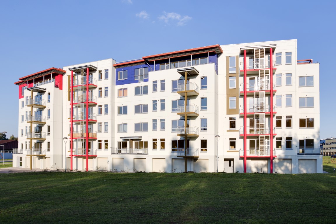 | Description: | Plot size 7 274 sqm, net area of the apartments 2 583 sqm. Apartment house has 5 storeys with two entrances and 40 apartments. Also 14 garage spaces and storage rooms for every apartment are available in the basement. |